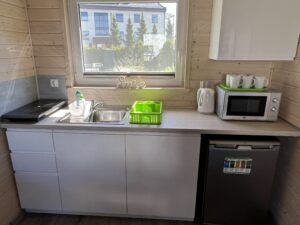 - Kuchenka 2 stanowiska, mikrofala, czajnik, lodówka z małym zamrażalnikiem
