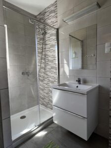 - Łazienka z dużym prysznicem